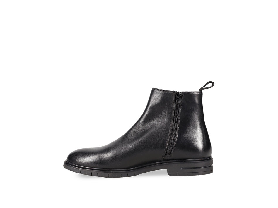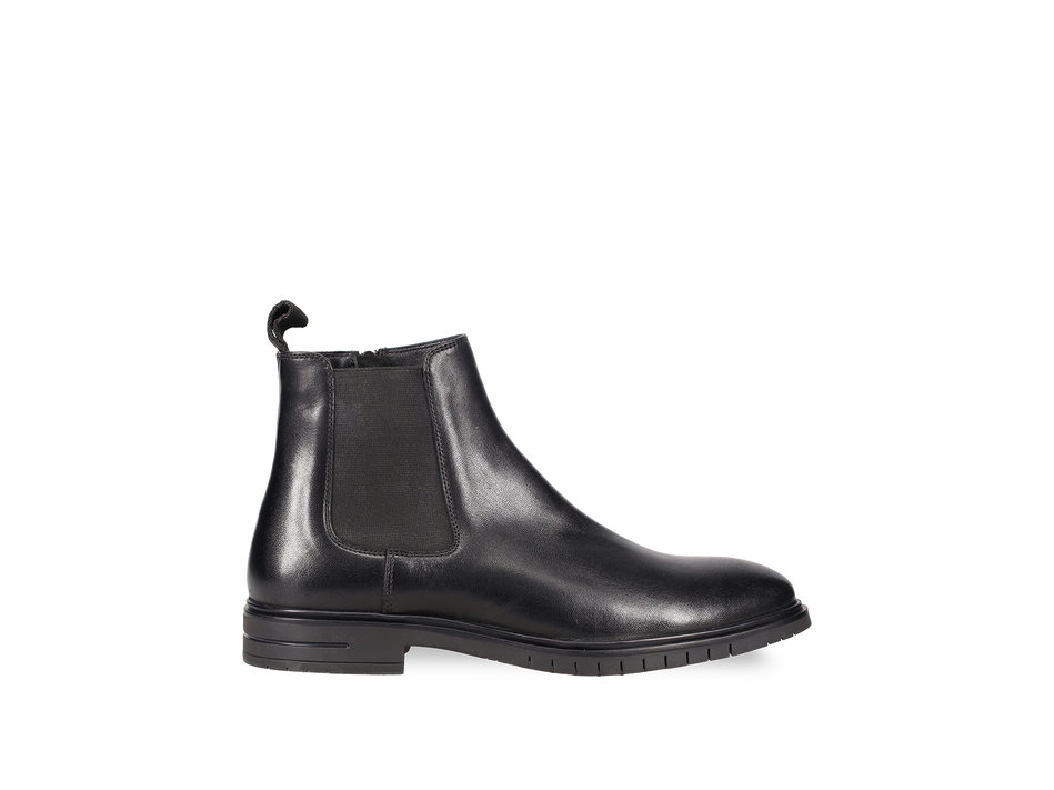 Ανδρικά δερμάτινα chelsea μποτάκια με λάστιχο και φερμουάρ ,σε μαύρο χρώμα, από την συλλογή της εταιρείας MIGATO. Άνετο μποτάκι με μαλακό πάτημα , εύκολη εφαρμογή στο πόδι και ελαστική σόλα.
