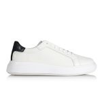 Ανδρικά sneakers σε λευκό χρώμα με μαύρη λεπτομέρεια στο πίσω μέρος , από την συλλογή της εταιρείας CALVIN KLEIN.