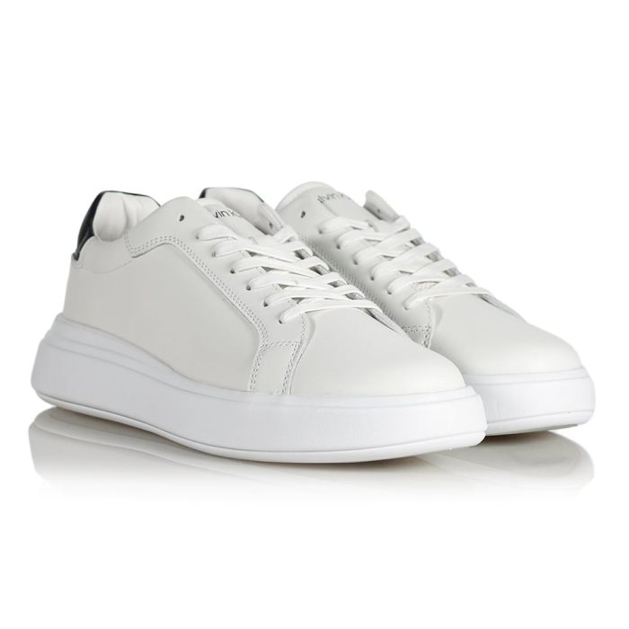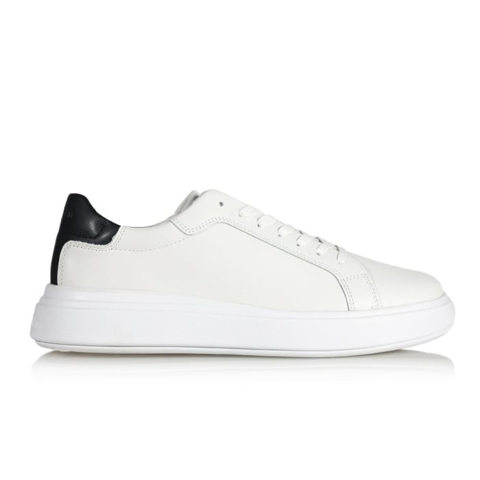 Ανδρικά sneakers σε λευκό χρώμα με μαύρη λεπτομέρεια στο πίσω μέρος , από την συλλογή της εταιρείας CALVIN KLEIN.